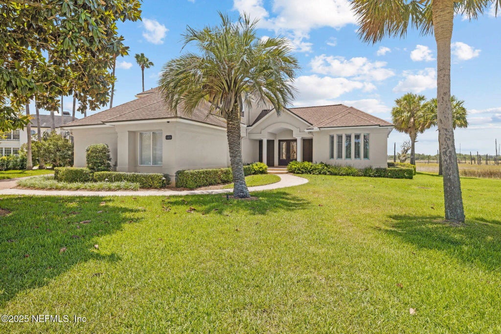 Surrounded by nature, this offers vistas that are unmatched. The unique plan maximizes indoor-outdoor connection. 4 brs + office, this custom home graces a premier estate lot in beautiful Marsh Landing... incredible views for miles. Boats pass on the distant Intracoastal Waterway. The floor plan is perfect for entertaining, with living areas connecting around the central kitchen. Rooms are full of light. The Lutron automated lighting system makes entertaining prep simple. Eye-catching features: high-quality cabinetry with built-in lighting; spa-like primary bathroom; expansive butler's pantry; smooth high ceilings; bar area with custom display space and storage; natural stone floors; large patio off the kitchen/family room (potential pool location); 240v car charger in the oversized 3-car (814sf) garage. The bedroom suites are on staggered floors for privacy. Setting it apart from others, this home has design details that really make sense. This is one-of-a-kind, feel-good wonderful!