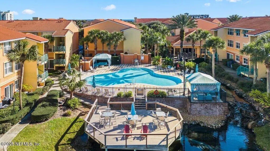 Don't miss your chance to own this 2-bedroom, 2-bathroom condo, just 1 block from the ocean! This third-floor unit offers a bright, open-concept living space, updated flooring, and a kitchen that features newer stainless steel appliances and ample storage. There is also a separate dining nook perfect for meals or game nights with friends. After a sun-filled day at the beach, kick back in your quiet, cozy living room or retreat to the spacious primary bedroom, complete with an en-suite bathroom and a relaxing soaking tub. The second bedroom is perfect for guests or turn it into a bonus room / office. The neighborhood amenities make every day feel like a vacation. Enjoy the pool, clubhouse, fitness room, and summer kitchen all year round. This move-in ready condo is just minutes from some of Jacksonville's premier dining and shopping! Property can be sold fully furnished.