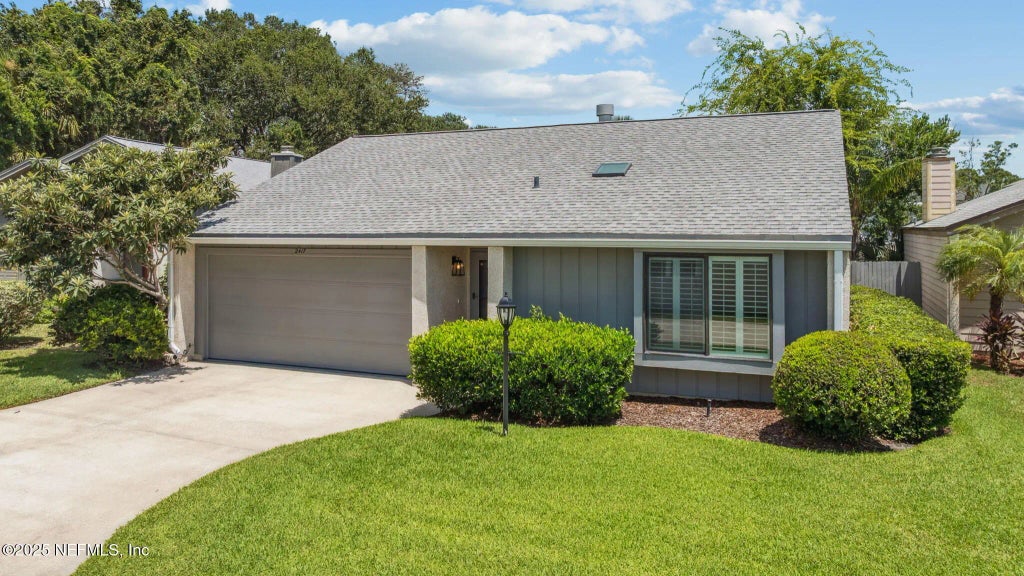 Directly Across from the World Renowned TPC Golf Course. Ideally situated east of A1A in Ponte Vedra Beach. Just steps from the shops and dining of Sawgrass Village and a short bike ride to the Atlantic Ocean, and near by Beach Clubs.This residence offers the perfect blend of coastal lifestyle and everyday convenience. Designed with both comfort and privacy in mind, the home features elegant Mediterranean tile flooring throughout, including the spacious screened-in back porch. Architectural highlights include vaulted ceilings, custom French doors, skylights that bathe the interiors in natural light, plantation shutters, and a cozy wood-burning fireplace. The fully enclosed backyard is surrounded by a privacy wall, creating a tranquil outdoor retreat, while the attached two-car garage adds to the home's practicality. A distinctive, extended driveway leads to a deep-set front porch, offering additional seclusion from the quiet cul-de sac.