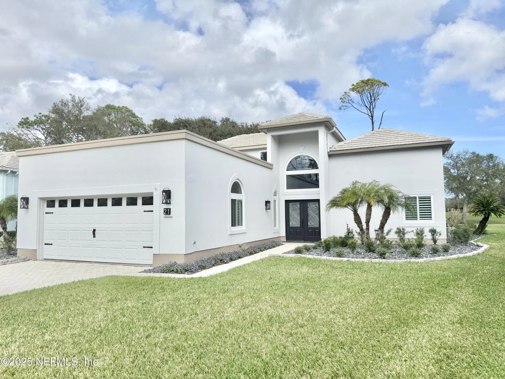 OPEN HOUSE SATURDAY OCT 11th @ 12-2 PM Come check out this fully renovated one level Plantation Bay home located on the golf course overlooking the #17 green with views of a pond, golf course and the brand new $40 million+ clubhouse! This home is move in ready thanks to a 200k renovation in 2024 with all new items including porcelain tile flooring throughout, windows with lifetime warranty, plumbing, electrical and lighting, grand kitchen with solid wood cabinets with quartz countertop and backsplash, black stainless steel appliances, solid wood cabinets for all the bathrooms with quartz countertops, floor to ceiling tiled showers with custom glass, sherwin williams paint inside and outside, solid wood baseboards, doors, fireplace, back patio tile and screens, hot water heater, total house water filter, landscaping with slate rocks, stone edging, bushes, palm trees, irrigation sprinklers and more. Located in flagler county with lower taxes. Membership to golf club/amenities is not required to live in plantation bay. Plantation Bay has 45 holes of championship golf, brand new luxury clubhouse, tennis courts, pickle ball, fitness center, two pools, cabana and more.