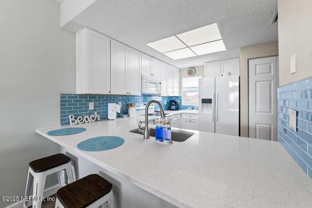 GATED OCEANFRONT Condo Community of Ocean Village Club! Enjoy the ultimate beach lifestyle with private access to the sand and surf right outside your door! This stylishly updated condo with vaulted ceilings is truly move-in ready and offers excellent rental potential, with the added convenience of elevator access, one of the few units in the community to have it. The kitchen features quartz countertops and an open-shelving pantry with plenty of storage, while the bathrooms have been tastefully updated. Tile and LVP flooring run throughout, making this home perfect for beachside living. The primary suite includes a walk-in shower and a space-saving pocket door for added functionality. A stacked washer and dryer are conveniently located in-unit, and ceiling fans provide comfort in the main living spaces. Recent upgrades include a 2023 Lennox HVAC system and a 2022 Rheem water heater, giving you peace of mind. For added convenience, the condo is also available furnished, making it truly move-in ready. Whether you're looking for a full-time residence, vacation getaway, or investment opportunity, this condo delivers it all in one of St. Augustine's most sought-after communities.Live where every day feels like a vacation!
