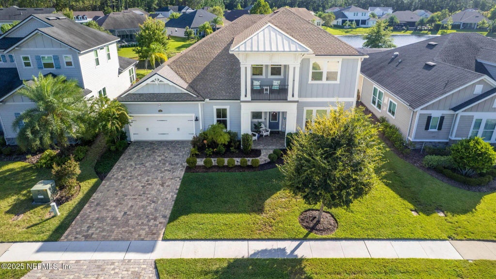 Luxurious lakefront living awaits in Nocatee's premier Twenty Mile Outlook neighborhood. This 4-bedroom, 3.5-bath pool home offers 3,668 sq ft of elegant design on a large landscaped lot. The first-floor primary suite features a spa-like bath with rain shower, while upstairs you'll find two bedrooms with a shared bath and a fourth ensuite bedroom with balcony access. The Chef's Kitchen boasts a large island, butler's pantry with wine fridge, reverse osmosis filtration system, and opens to spacious living areas filled with natural light. Plantation shutters throughout the home add timeless style and privacy. In addition to the main living spaces, the home offers a dedicated office on the first floor, ideal for working remotely or possibly a 5th bedroom. Upstairs, a flex space provides additional versatility, perfect for a media room, play area, or second office. Step outside to your private retreat with a heated saltwater pool with fire feature, outdoor kitchen and bar with kegerator, gas firepit, shower, and an expansive patio perfect for entertaining. Enjoy the best of Florida living in this highly sought-after community. Nocatee amenities include, but are not limited to: navigable water launch points for kayaks, paddle boards, and canoes, waterparks, playgrounds, bicycle/walking paths, and so much more...