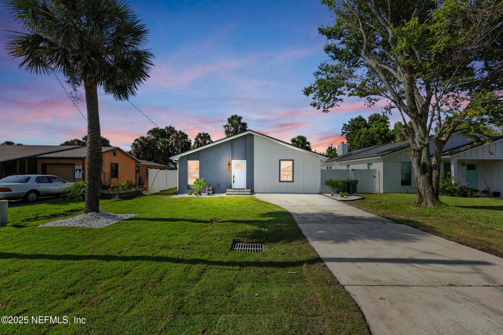 This fully renovated 4-bedroom, 2-bath home blends modern elegance with beachside charm—just 4.5 blocks from the ocean. The chef's kitchen is a showstopper, featuring white shaker cabinets, premium white quartz counters, a bold black hood, a Kohler undermount sink, blue tile backsplash, a wine cooler, and LG stainless steel appliances with an induction cooktop. Wide-plank luxury vinyl flooring flows throughout, complemented by recessed lighting, stylish fixtures, and a shiplap fireplace wall with an electric fireplace and an INCLUDED 65'' LG TV. The primary bedroom includes a built-in closet organizer and barn doors, while the guest bath showcases marble flooring with all-porcelain fluted tile walls, and the second bath features wall tile paired with shiplap. Brand new windows and doors, including French doors with built-in blinds in the back bedroom, fill the home with natural light, while new siding and lush zoysia grass enhance curb appeal. Walk-in closets provide ample storage,and every major system has been replaced, including the roof, HVAC, electrical, plumbing, and tankless water heater, ensuring peace of mind for years to come. Outside, a paver patio and fenced backyard with a durable vinyl fence create the perfect space for entertaining or relaxing in privacy, all on a 50' x 125' lot (plenty of room for a pool), making this beachside living at its finest. A Blink floodlight is included. **Option to purchase the Seller's 6-seater 2024 D5 Evolution Golf Cart. *Shed sold AS-IS. ***Seller's preferred lender is offering up to a 1% credit, which may be applied toward buyer's closing costs, a permanent rate buydown, or a temporary buydown program. Credit is subject to buyer qualification and program guidelines.
